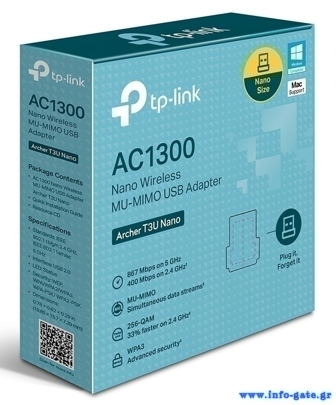 TP-LINK ασύρματος USB αντάπτορας δικτύου Archer T3U Nano, 1300Mbps, V.1