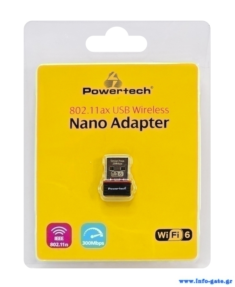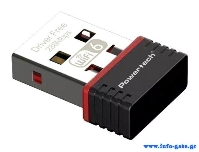 POWERTECH ασύρματος USB αντάπτορας δικτύου PT-1383, 300Mbps WiFi 6