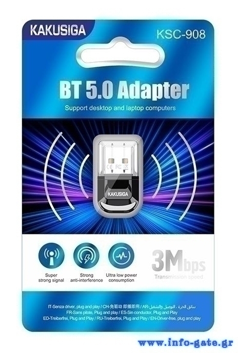 Ο USB αντάπτορας Bluetooth της KAKUSIGA σας επιτρέπει να συνδέσετε ασύρματα, μέσω θύρας USB, έναν non-Bluetooth υπολογιστή με συσκευές Bluetooth όπως ασύρματα ακουστικά ή ποντίκια.