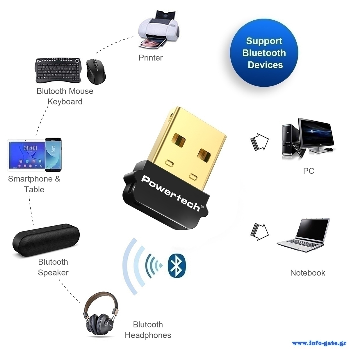 Ο USB αντάπτορας Bluetooth της Powertech σας επιτρέπει να συνδέσετε ασύρματα, μέσω θύρας USB, έναν non-Bluetooth υπολογιστή με συσκευές Bluetooth όπως ασύρματα ακουστικά ή ποντίκια.