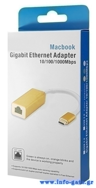 Μετρατοπέας που συνδέεται στην θύρα USB Type-C του υπολογιστή/laptop και προσφέρει μία θύρα RJ45. Υποστηρίζει ταχύτητες 10/100/1000Mbps και βασίζεται στο chipset RTL8153.