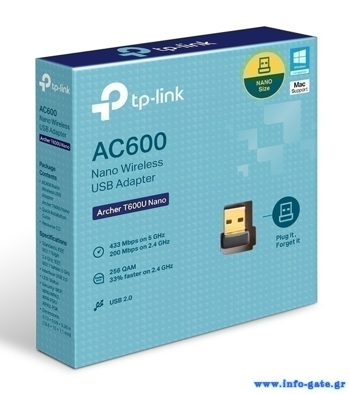 TP-LINK ασύρματος USB αντάπτορας δικτύου Archer T600U Nano, 600Mbps, V.1