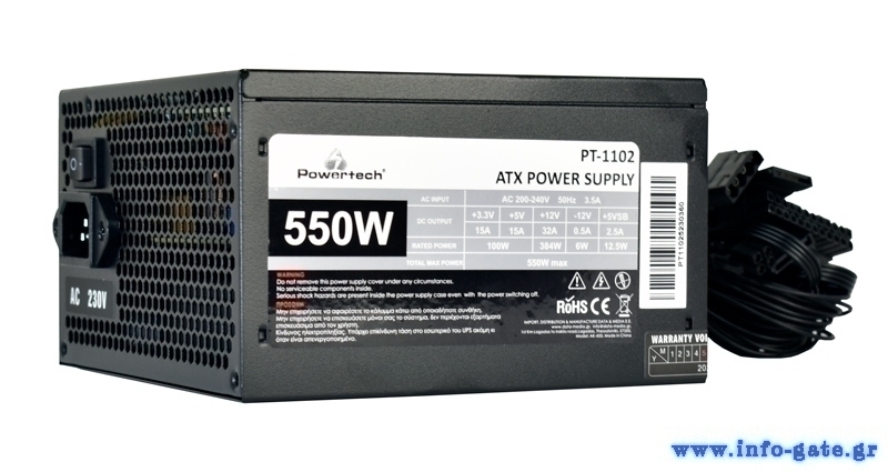 POWERTECH τροφοδοτικό για PC PT-1102, 550W, ATX, 120mm Fan