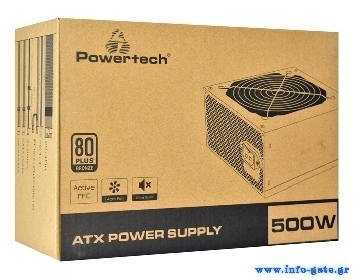 Τροφοδοτικό για PC της Powertech με έμφαση στην ποιότητα κατασκευής και την ομαλή λειτουργία. Ενσωματώνει ανεμιστήρα που διακρίνεται για την αθόρυβη λειτουργία του.