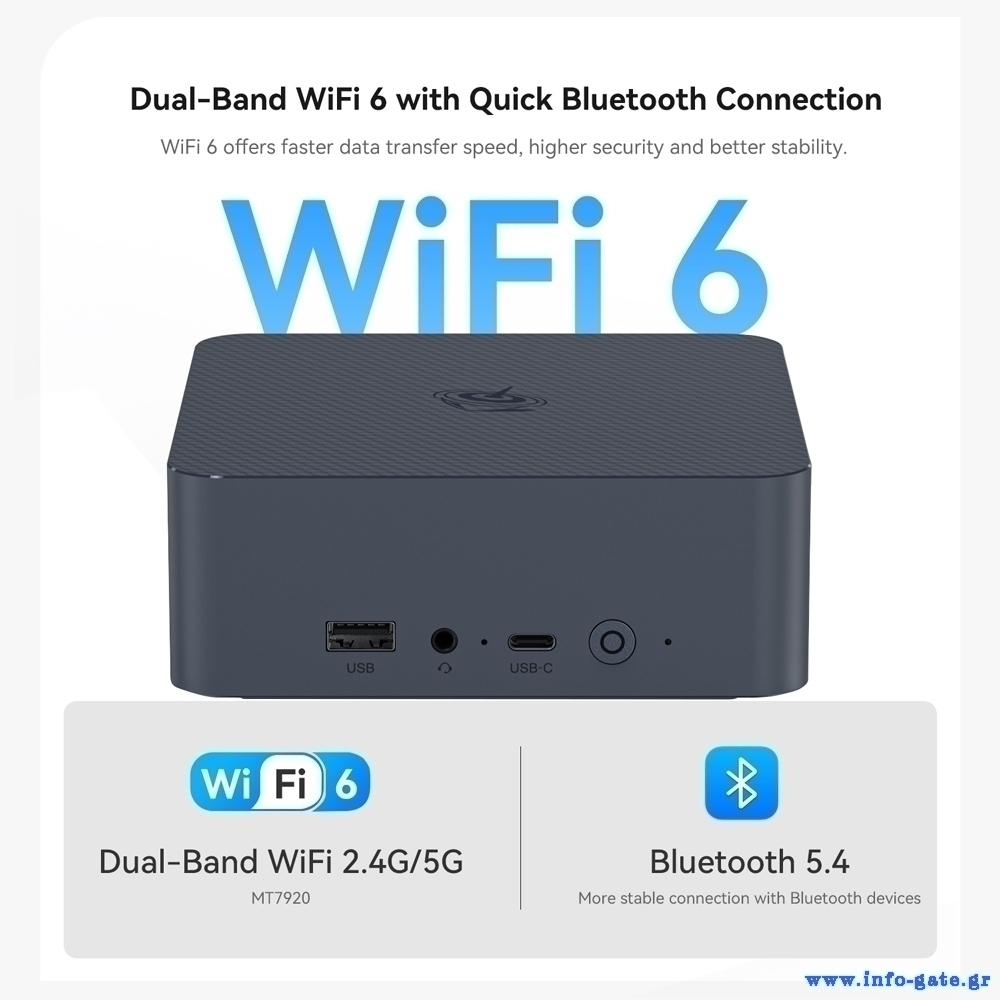 -Δίκτυο: WiFi 6 (MT7920), Dual Gigabit Ethernet 1000Mbps