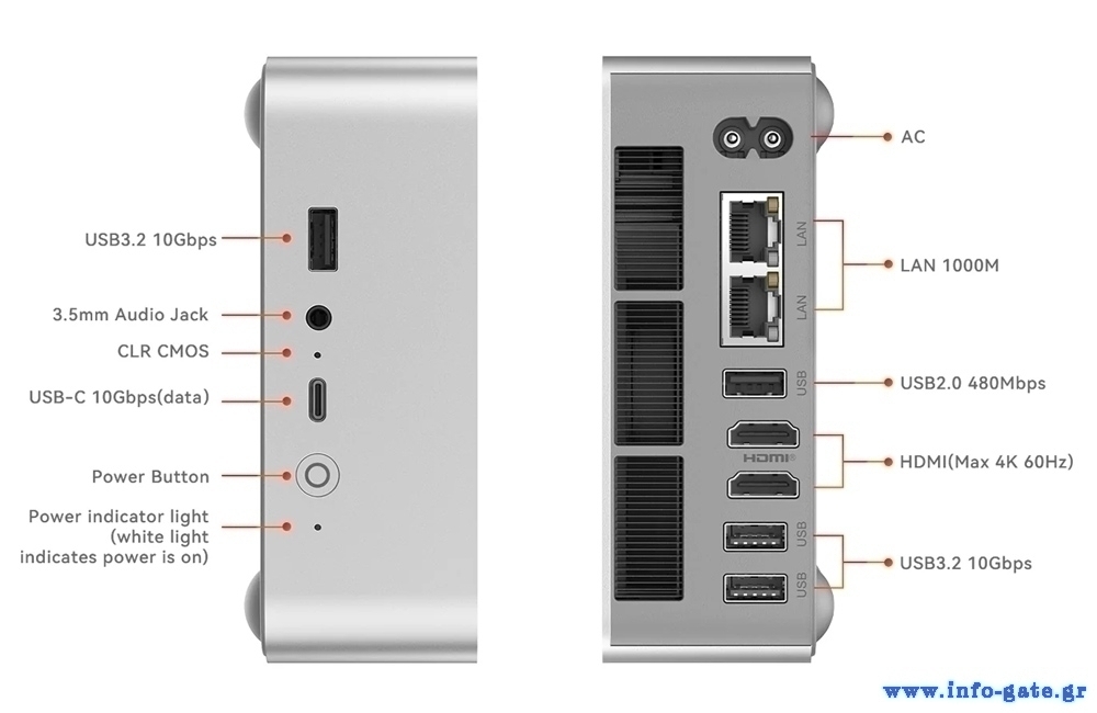 -Δίκτυο: WiFi 6 (Intel AX200), Dual Gigabit Ethernet 1000Mbps