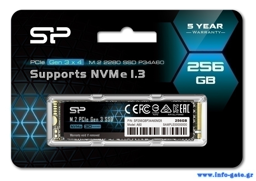 SILICON POWER SSD PCIe Gen3x4 P34A60 M.2 2280, 256GB, 2.200-1.600MB/s