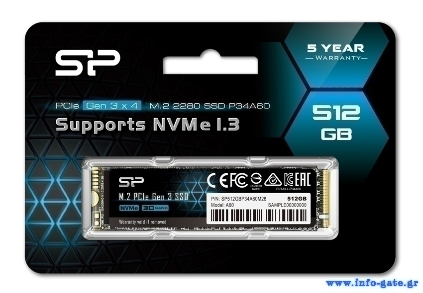 SILICON POWER SSD PCIe Gen3x4 P34A60 M.2 2280, 512GB, 2.200-1.600MB/s
