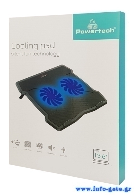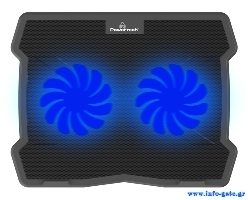 POWERTECH Βάση & ψύξη laptop PT-930, έως 15.6", 2x 125mm fan, LED, μαύρο