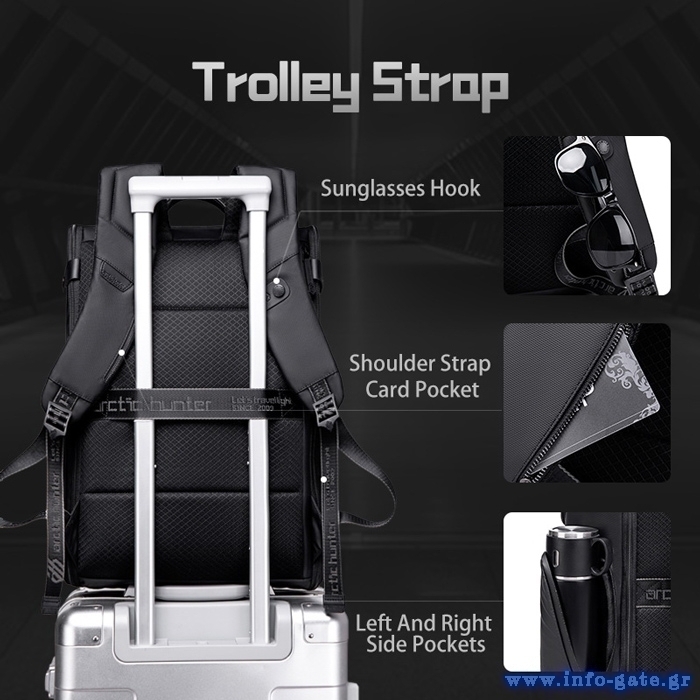 -ειδική υποδοχή στην πλάτη για στήριξη επάνω σε βαλίτσα μεταφοράς