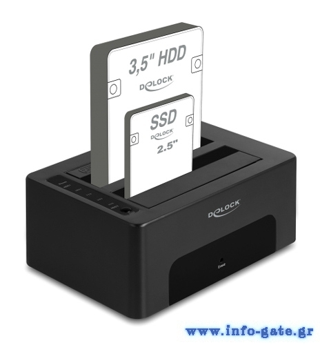 DELOCK docking station για 2.5" ή 3.5" SATA HDD/SSD 64187, 2 θέσεων, 5Gbps, clone/erase function, μαύρο