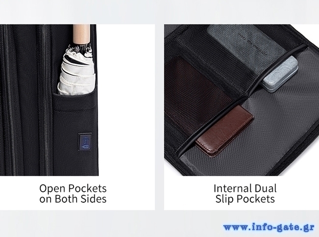 -πολλές εσωτερικές & εξωτερικές τσέπες αποθήκευσης