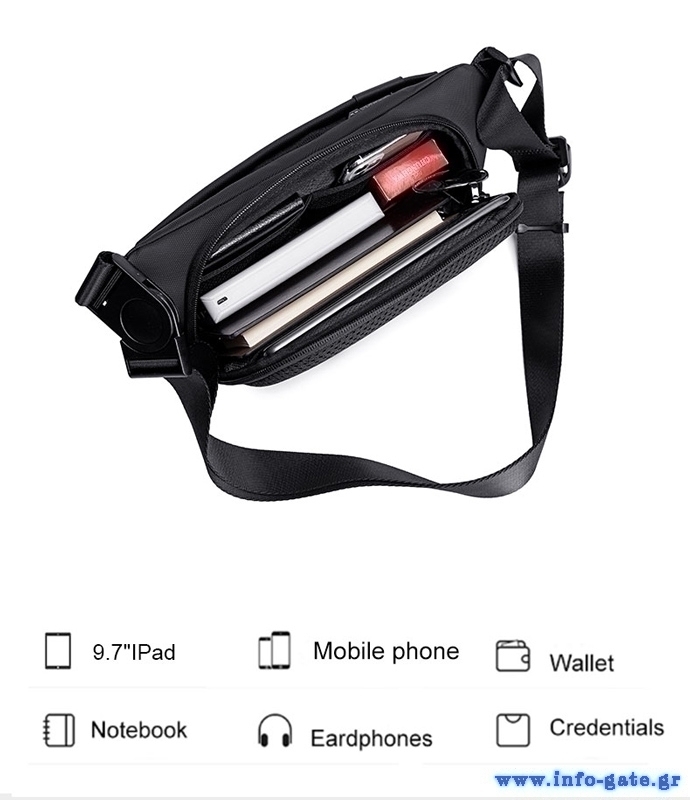 ARCTIC HUNTER τσάντα μέσης Y00569 με θήκη tablet, 3.5L, μαύρη