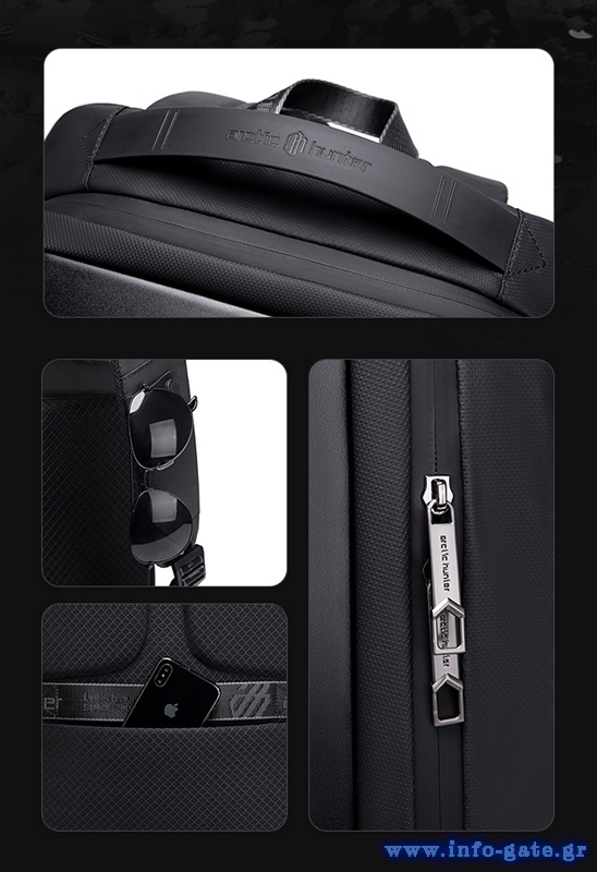 ARCTIC HUNTER τσάντα πλάτης B00487 με θήκη laptop 15.6", λουκέτο TSA, 22L, μαύρη