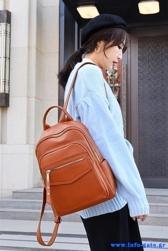 Τσάντα πλάτης με μοντέρνο design, σε καφέ χρώμα, ιδανική για όλες τις ώρες της ημέρας. Διαθέτει πολλές εσωτερικές και εξωτερικές τσέπες, για να τοποθετήσετε χρήσιμα αντικείμενα.