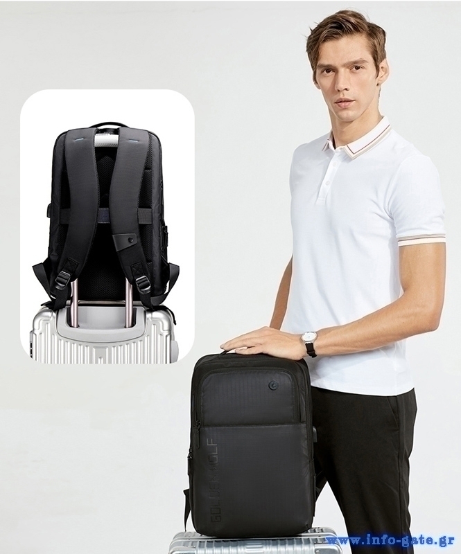 GOLDEN WOLF τσάντα πλάτης GB00399, με θήκη laptop 15.6", 20L, μαύρη