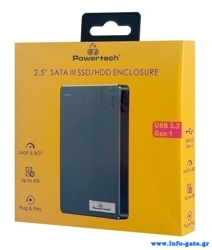 Η θήκη της Powertech επιτρέπει την σύνδεση ενός 2.5" SATA HDD ή SSD με έναν επιτραπέζιο ή φορητό υπολογιστή μέσω θύρας USB.
