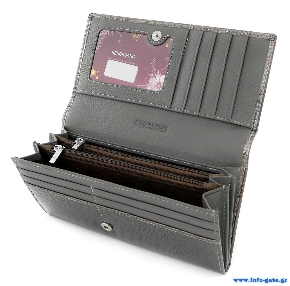 HENGHUANG γυναικείο πορτοφόλι LBAG-0029, δερμάτινο, γκρι