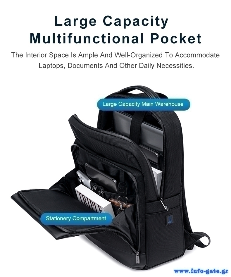 Εξοπλισμένη με ξεχωριστή θήκη για laptop και tablet, εξασφαλίζει την ασφαλή μεταφορά των ηλεκτρονικών σας συσκευών.