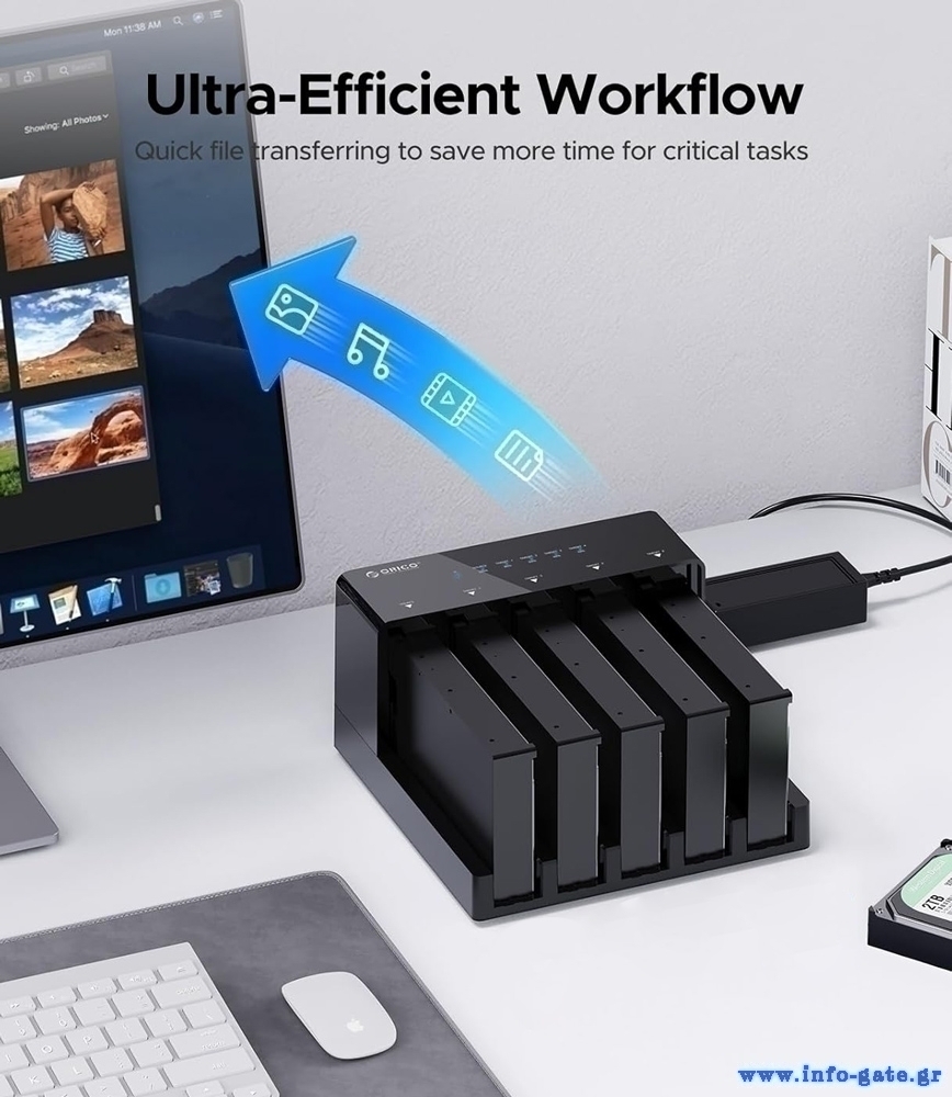 Το docking station της ORICO επιτρέπει την σύνδεση έως 5x 2.5" ή 3.5" SATA HDD/SSD σε έναν υπολογιστή μέσω θύρας USB.