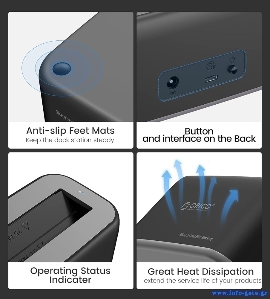 Το docking station της ORICO επιτρέπει την σύνδεση ενός 2.5" ή 3.5" SATA HDD/SSD σε έναν υπολογιστή μέσω θύρας USB ή USB-C.