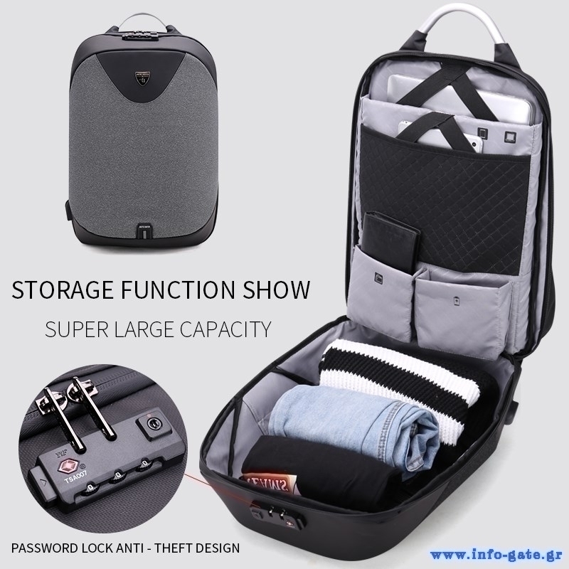 ARCTIC HUNTER τσάντα πλάτης B00208 με θήκη laptop 15.6", λουκέτο TSA, 24L, γκρι