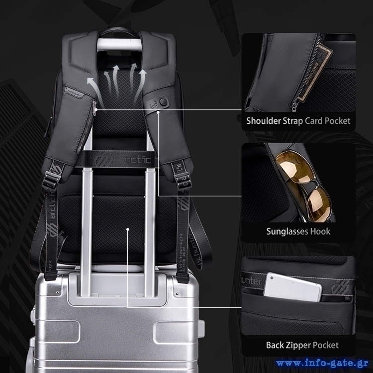 ARCTIC HUNTER τσάντα πλάτης B00443 με θήκη laptop 15.6, USB, 19L, μαύρη