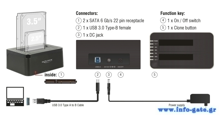 Υποστηρίζει λειτουργία κλωνοποίησης που επιτρέπει την αντιγραφή περιεχομένου από ένα HDD σε άλλο χωρίς τη χρήση υπολογιστή.