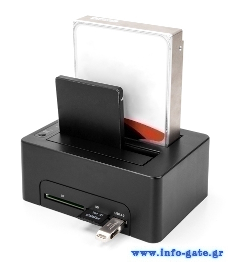 DELOCK docking station για 2.5" ή 3.5" SATA HDD/SSD 64183, 2 θέσεων, με card reader, 5Gbps, clone function, μαύρο