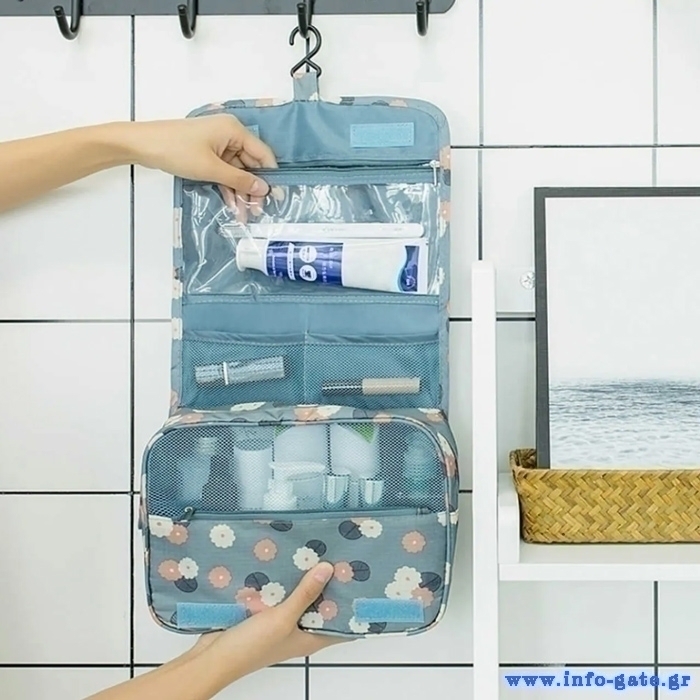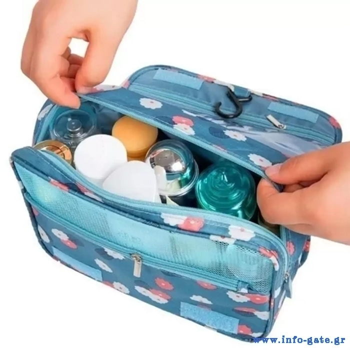 Γυναικείο νεσεσέρ, ιδανικό για ταξίδια και εκδρομές. Διαθέτει πολλαπλές εσωτερικές θέσεις για την τοποθέτηση προϊόντων περιποίησης και καλλυντικών. Είναι κατασκευασμένο από αδιάβροχο υλικό και διαθέτει βολικό γάντζο κρεμάσματος.