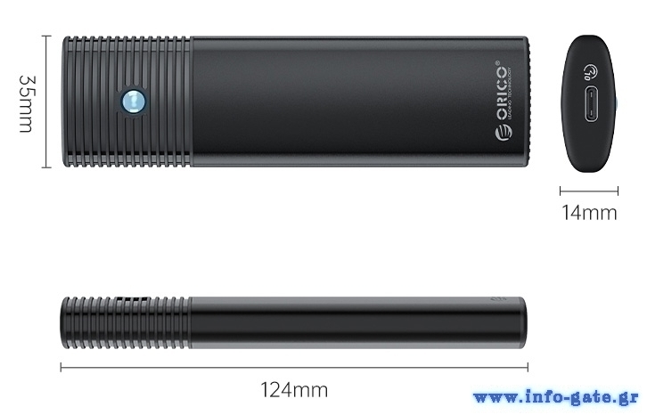 Εξωτερικό περίβλημα της Orico που επιτρέπει την εγκατάσταση ενός δίσκου M.2 NVMe SSD σε μορφή 2280, 2260, 2242 και 2230 και μπορεί να συνδεθεί μέσω θύρας USB-C USB 3.2 Gen2 σε dekstop ή laptop. Είναι ultra compact, κατασκευασμένη από αλουμίνιο, παρέχει άριστη προστασία από θερμότητα και υποστηρίζει ταχύτητες μετάδοσης έως 10Gbps.