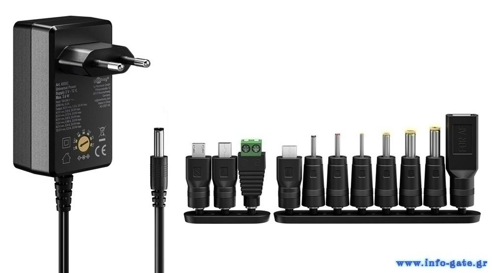 GOOBAY επιτοίχιος φορτιστής 65592, 3V-12V, 3.6W, 12 tips