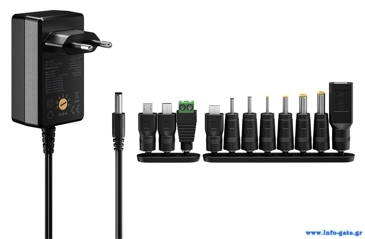 GOOBAY επιτοίχιος φορτιστής 74436, 5V-15V, 36W, 12 tips