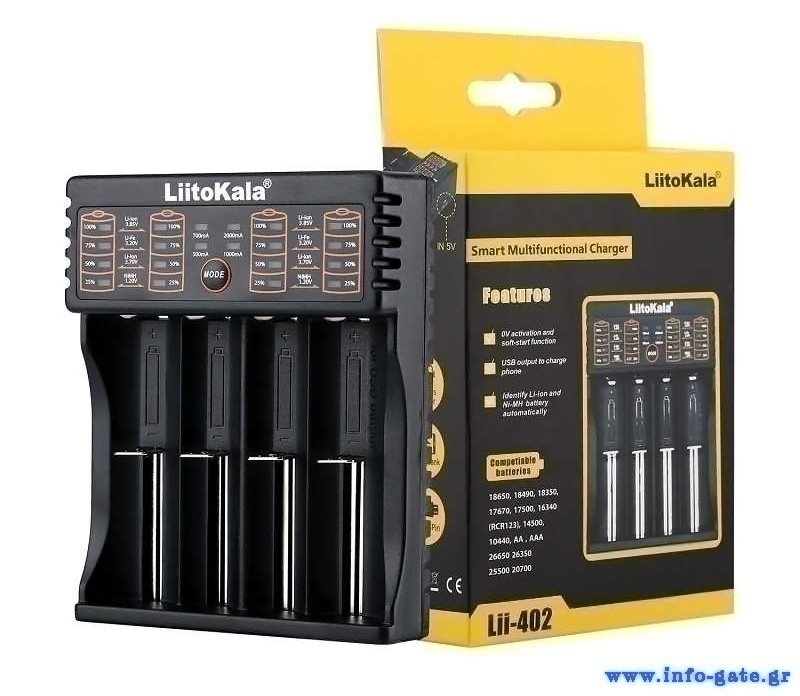 LIITOKALA φορτιστής LII-402 για μπαταρίες NiMH/CD, Li-Ion, IMR, 4 slots