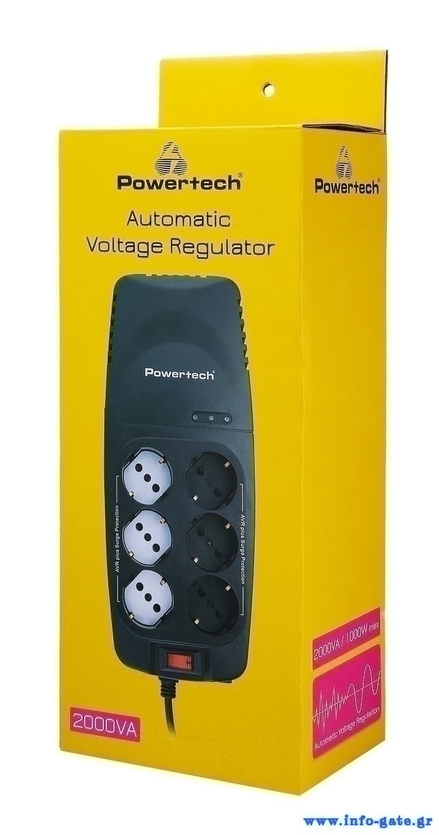 POWERTECH σταθεροποιητής ρεύματος PT-1496, 2000VA/1000W, 6x schuko