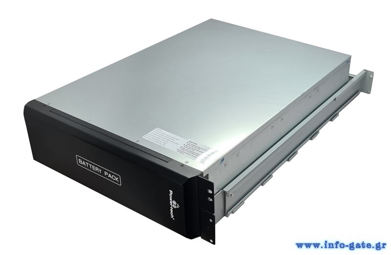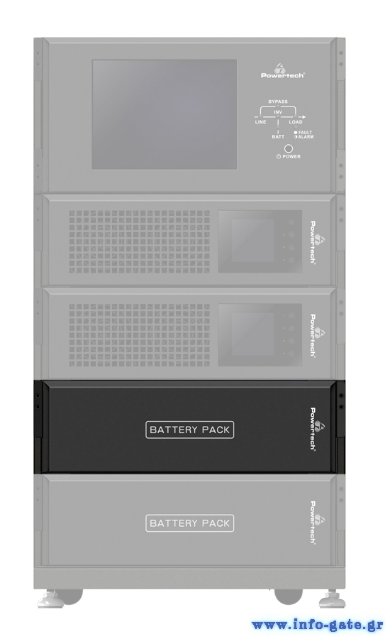 Battery pack Powertech για εγκατάσταση μπαταριών UPS, χωρητικότητας 7A, 9Ah και 10Ah. Μέσα στο κυτίο μπορούν να τοποθετηθούν 16 έως 20 μπαταριές, ενώ η τοποθέτηση του μπορεί να γίνει οριζόντια σε καμπίνα rack 19" ή κάθετα σε επιδαπέδιο πύργο.