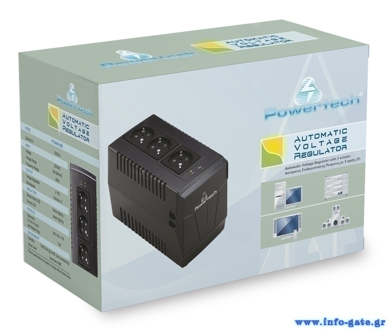 POWERTECH σταθεροποιητής ρεύματος PT-AVR-1500, 1500VA, 3x έξοδοι πρίζας