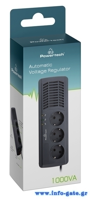 POWERTECH σταθεροποιητής ρεύματος PT-AVR1000I, 1000VA/500W, 3x schuko