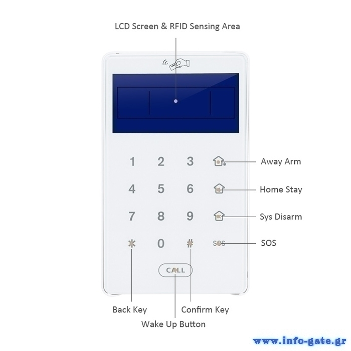 Ασύρματο πληκτρολόγιο συναγερμού PB-503R με οθόνη LCD, αφής, RFID