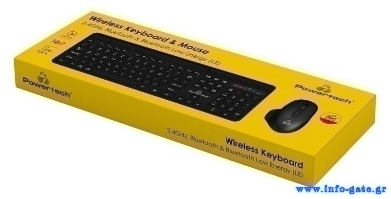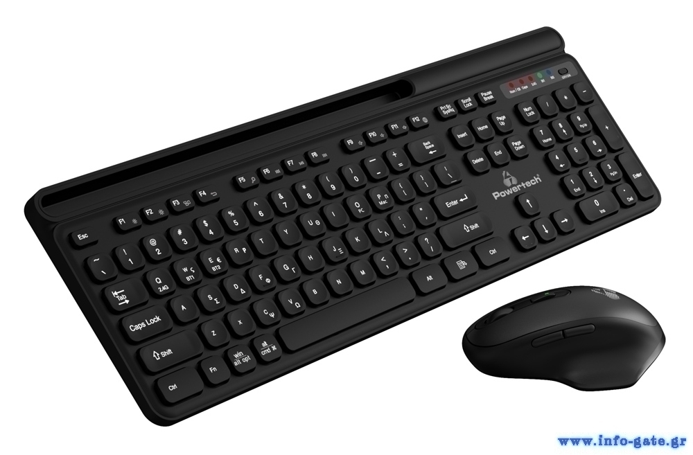 POWERTECH set ποντίκι & πληκτρολόγιο PT-1154, 2.4GHz & Bluetooth, μαύρο
