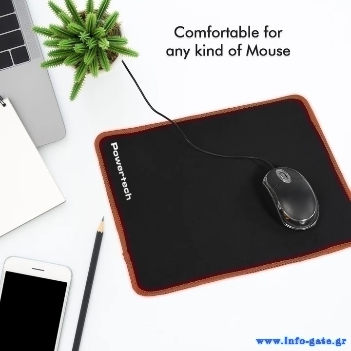 Ποιοτικό gaming mouse pad της Powertech ιδανικό τόσο για οπτικά όσο και για λέιζερ ποντίκια.