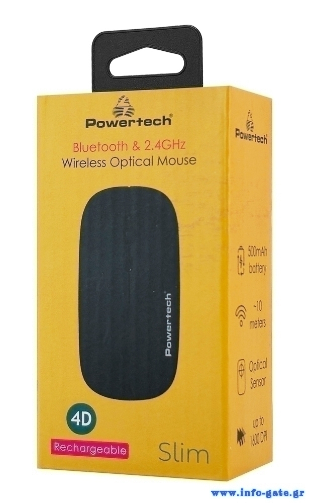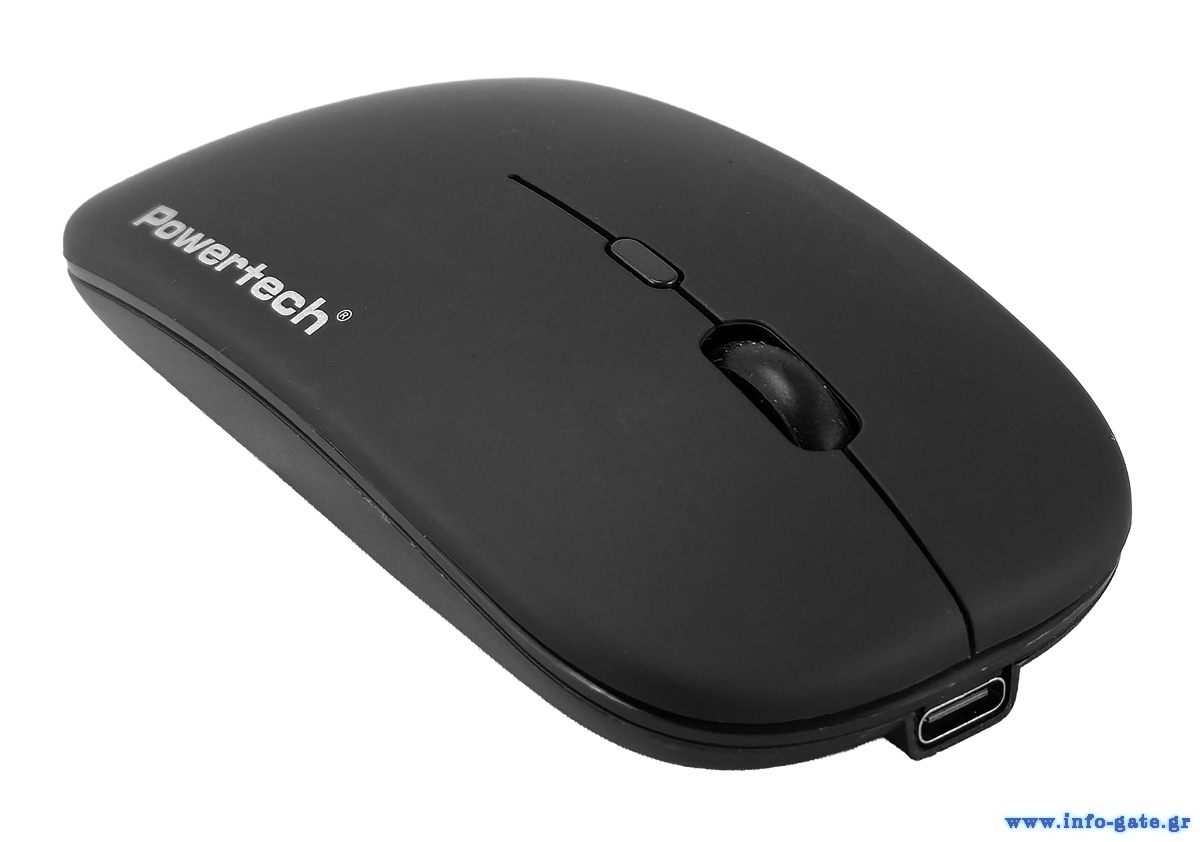 POWERTECH ασύρματο ποντίκι PT-1381, 2.4GHz & Bluetooth, έως 1600DPI, 500mAh, μαύρο