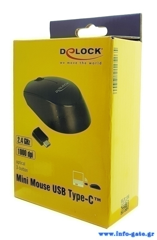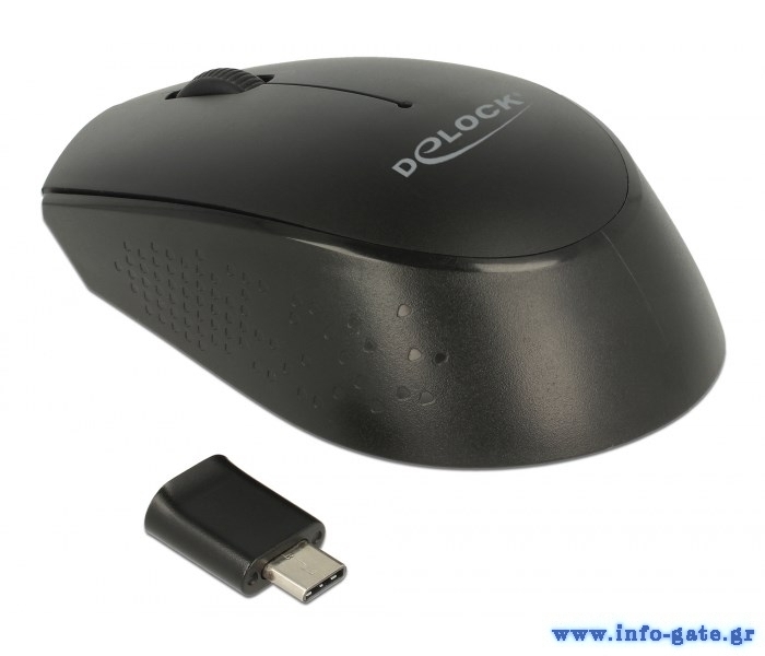 DELOCK ασύρματο ποντίκι 12526, Οπτικό, USB-C receiver, 3-button, μαύρο