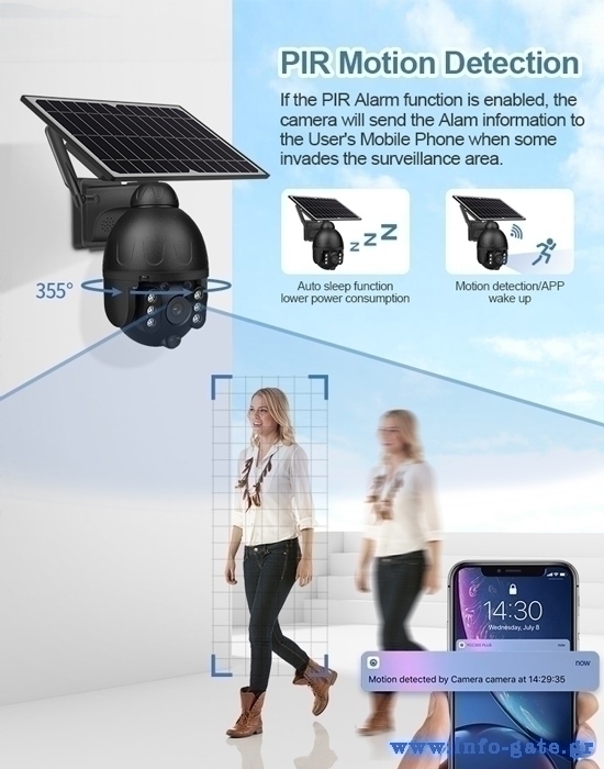 Ασύρματη ηλιακή IP κάμερα της Sectec εξωτερικού χώρου με διακριτική και μοντέρνα εμφάνιση. Διαθέτει αισθητήρα ανάλυσης 3MP και μπορεί να μεταφέρει εικόνα ανάλυσης HD. Η συσκευή διακρίνεται για την πολύ εύκολη και γρήγορη εγκατάσταση της καθώς και τον απροβλημάτιστο χειρισμό της από συσκευή smartphone απομακρυσμένα μέσω της εφαρμογής UBox. Η κάμερα διαθέτει αμφίδρομη μεταφορά φωνής και ήχου ενώ μπορεί επίσης να εντοπίζει ανθρώπινη σιλουέτα και κίνηση. Υποστηρίζει λειτουργία νυχτερινής όρασης για την παρακολούθηση ακόμη και στο σκοτάδι και τα βίντεο που καταγράφονται αποθηκεύονται εσωτερικά σε micro SD (δεν συμπεριλαμβάνεται) ή απευθείας σε λογαριασμό στο cloud. Τροφοδοτείται από 6 μπαταρίες 18650 (δεν συμπεριλαμβάνονται) οι οποίες επαναφορτίζονται με ηλιακή ενέργεια χάρη στο ηλιακό πάνελ.