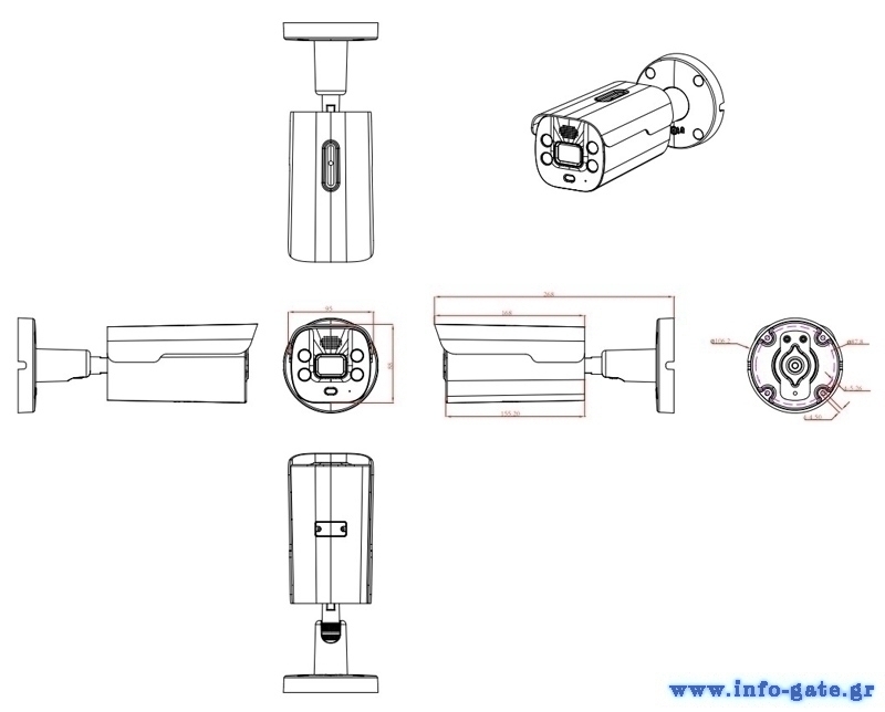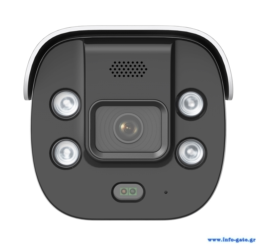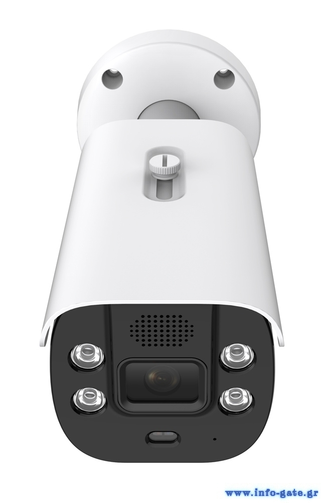 IP κάμερα, με φακό 3.6mm, 1/2.8" Sony CMOS αισθητήρα, ανάλυση 5MP και εύρος υπέρυθρων IR έως 40m. Υποστηρίζει καταγραφή σε κάρτα micro SD (δεν συμπεριλαμβάνεται) και εξοπλίζεται με ηχείο και μικρόφωνο για αμφίδρομη μεταφορά φωνής και ήχου. Είναι active deterrence κάμερα που σημαίνει ότι αποτρέπει τους εισβολείς με ηχητικό και οπτικό (κόκκινο & μπλε φως) συναγερμό. Επιπλέον, διαθέτει ανθεκτικό μεταλλικό σώμα με αδιάβροχη προστασία IP67.