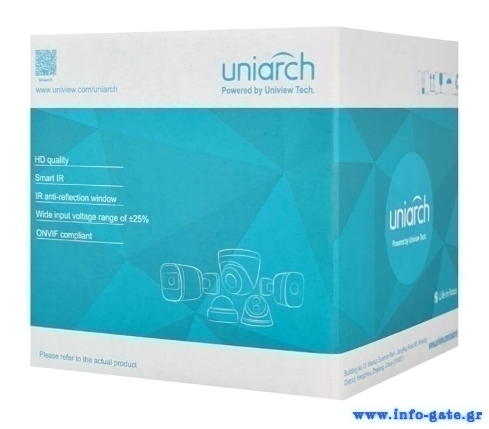Δικτυακή κάμερα της Uniarch (Powered by Uniview Tech), με αισθητήρα ανάλυσης 2MP, φακό 2.8mm και εύρος υπέρυθρων IR έως 30m. Υποστηρίζει τροφοδοσία PoE και εξοπλίζεται με εσωτερικό μικρόφωνο για μεταφορά ήχου. Το σώμα της κάμερας είναι κατασκευασμένο από ανθεκτικό υλικό με στεγανοποίηση επιπέδου IP67, γεγονός που την καθιστά κατάλληλη για χρήση σε εξωτερικούς χώρους.