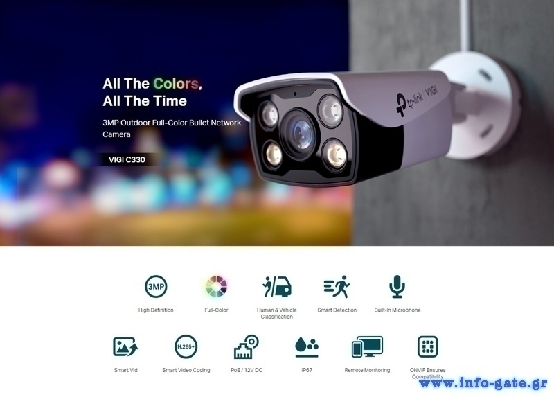 TP-LINK IP κάμερα VIGI C330, 4mm, 3MP, PoE, IP67, Ver. 2.0