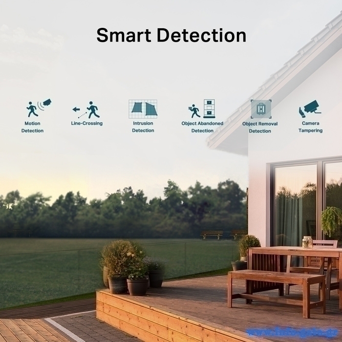 -Έξυπνη ανίχνευση: Λάβετε ειδοποιήσεις και ελέγξτε τις ροές όταν κάποιος εισέρχεται σε μια περιοχή που έχετε ορίσει, εμποδίζει την κάμερα ή αφαιρεί/εγκαταλείπει αντικείμενα.