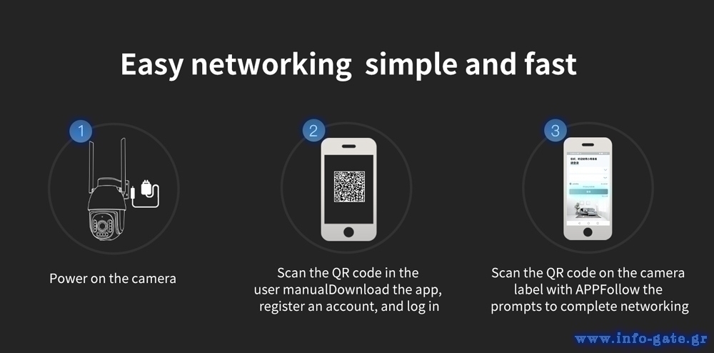 Ρυθμίζεται εύκολα και ελέγχεται από smartphone μέσω Wi-Fi (2.4GHz & 5GHz) και της εφαρμογής VStarcam Ultra.