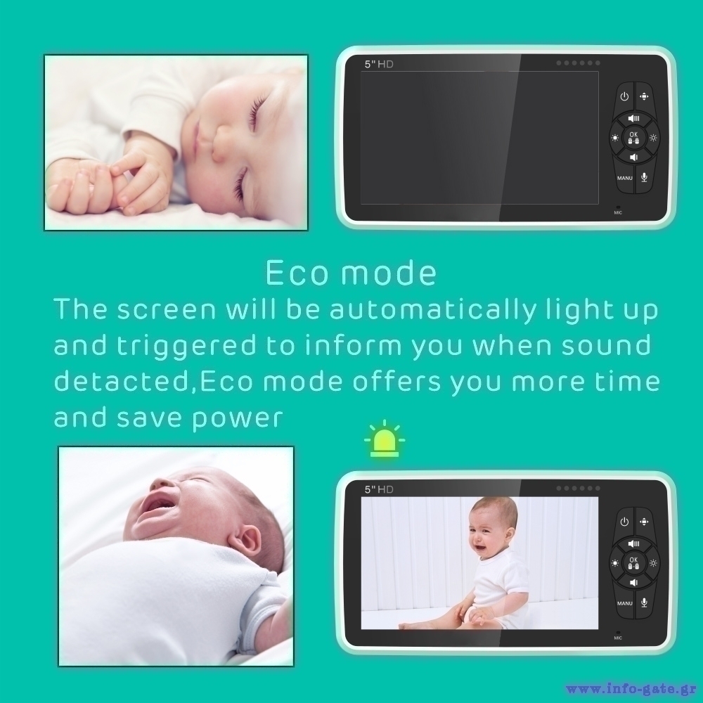 Διαθέτει ECO mode λειτουργία, με την οποία, η οθόνη ενεργοποιείται αυτόματα μόνο όταν εντοπίσει ήχο η κάμερα.